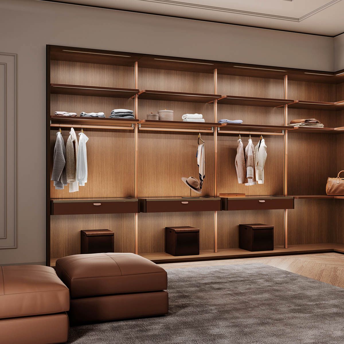 高級訂製精神與流程用於衣櫃,打造了居住空間的舒適與真奢華,回到設計史,這是二十一世紀空間敘事的最新篇章。