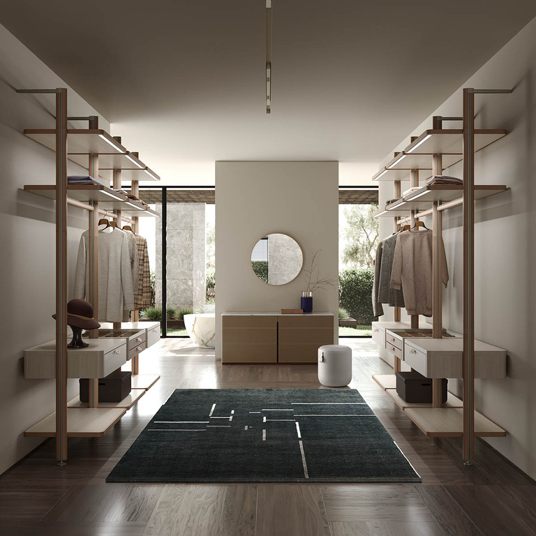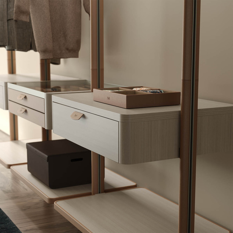 DressCove 被定義為 Poltrona Frau 首個完整的「夜間系統」(Night System),涵蓋傳統封閉式衣櫃與開放式更衣間(walk-in closet)系統,整體設計出自米蘭建築師 Dante Bonuccelli ,一位活躍於高端建築與室內設計領域的專家。